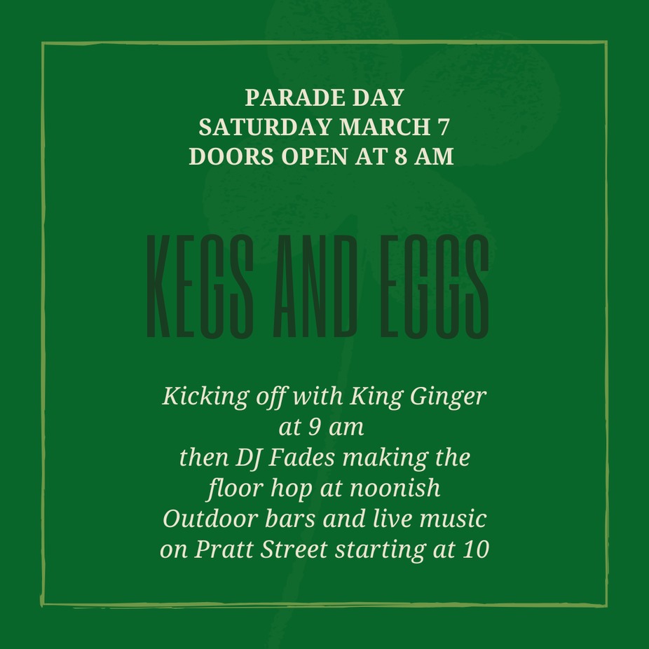 Join us Saturday March 7th on Pratt St. Pub opens at 8 am, with the outdoor bar opening at 10. Live music inside and out all day.