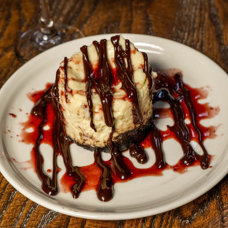 Award-winning cheese cake, made in-house, smooth and creamy cheesecake baked with an Oreo cookie crust, served with chocolate sauce and fruit